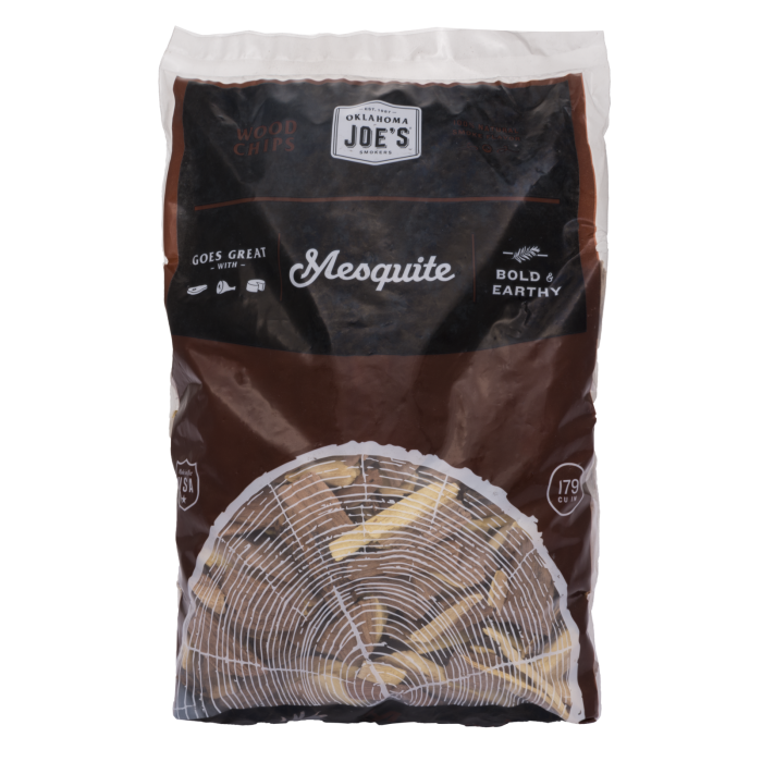 Використовуйте дерев'яну тріску Oklahoma Joe's® Mesquite Wood Chips, щоб надати їжі сильний, натуральний смак. Просто покладіть деревну тріску в коробку для копчення або прямо на решітку гриля для досягнення оптимальних результатів.