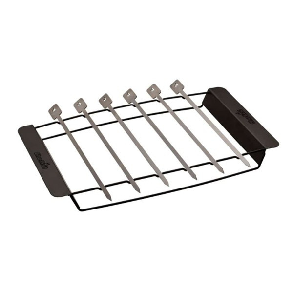 Комплект з високоякісних шампурів з підставкою. Добре підійде для приготування кебаба. Набір складається з 6-ти шампурів і рамки. Довжина шампурів 30 см